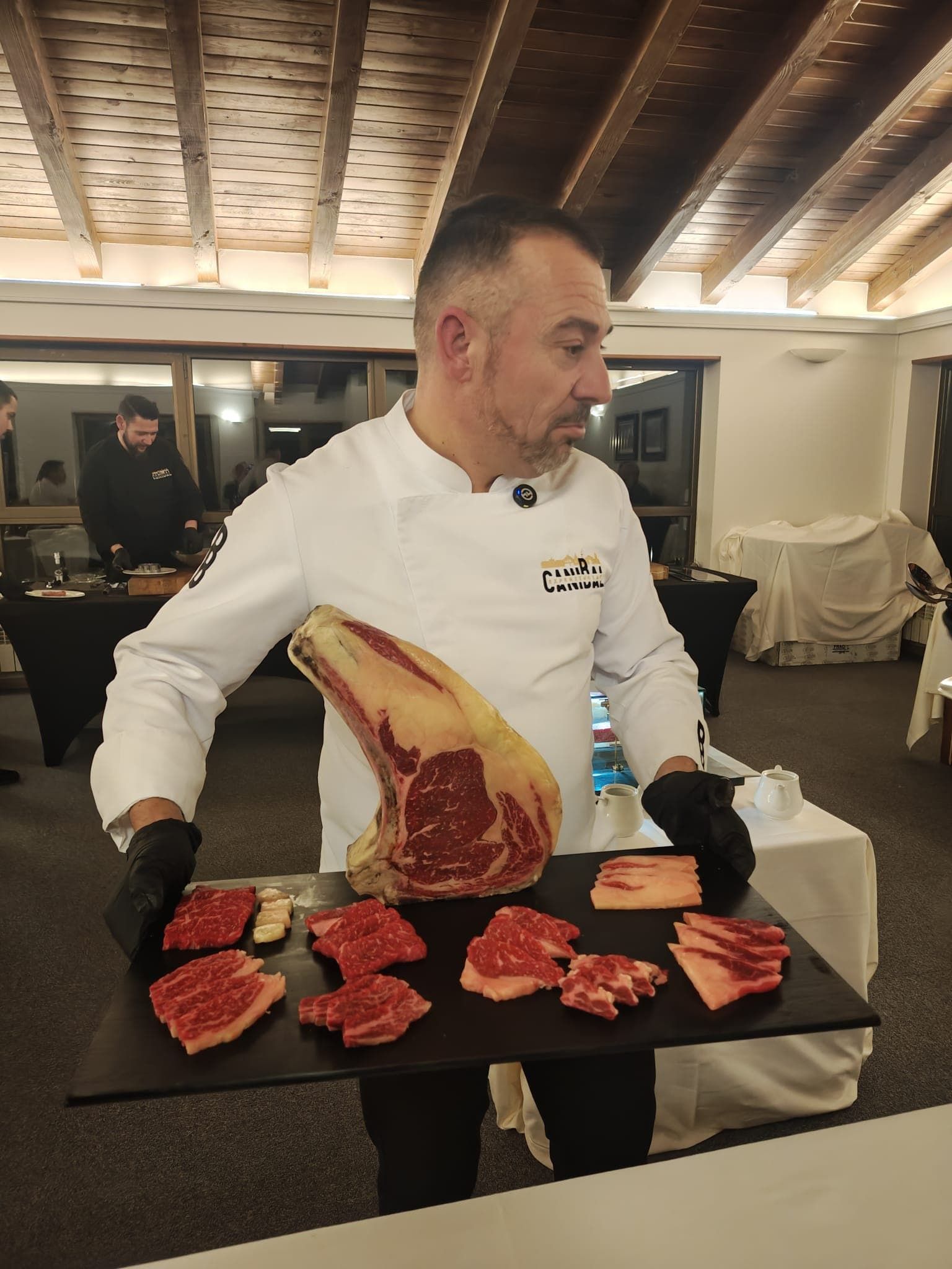 Exhibición de cortes premium antes de su paso por las brasas, donde los asistentes pudieron apreciar el excepcional marmoleado y la calidad de la materia prima.